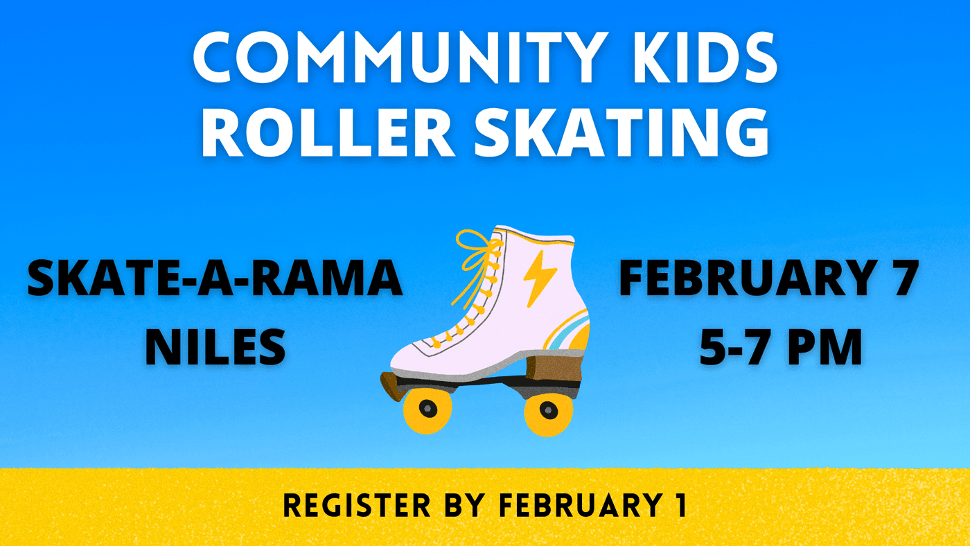 Community Kids families are invited to join us for an evening of roller skating at Skate-a-Rama, 1010 Huntly Road in Niles from 5-7 pm.